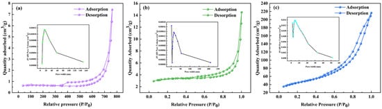 N2 adsorption–desorption curves and BJH pore size distribution curves of CG (a), CGPC (b), and PAC-CGPC (c).