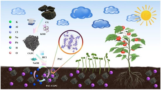 In this study, the Hancheng CG material was mixed with KOH and calcinated to prepare the CGPC material. This material was subsequently loaded with PAC to prepare the PAC-CGPC material with ion exchange properties to restrict the bioavailability of Pb2+ in soil. The following conclusions were drawn in this study: