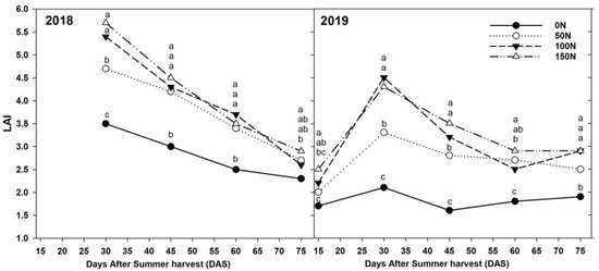 | 2019 | N level | 0 N | 418 cB | 418 cC | 468 aB | 462 aB | 440 bB | 425 bcB |
