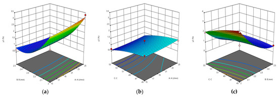 In order to visualize and analyze the relationship between factors and experimental indexes, Design Expert 13 was used to draw the response surface, as shown in Figure 5 and Figure 6.