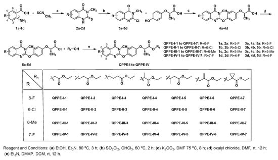 General synthetic route for the series target compounds QPPE-I to QPPE-IV.