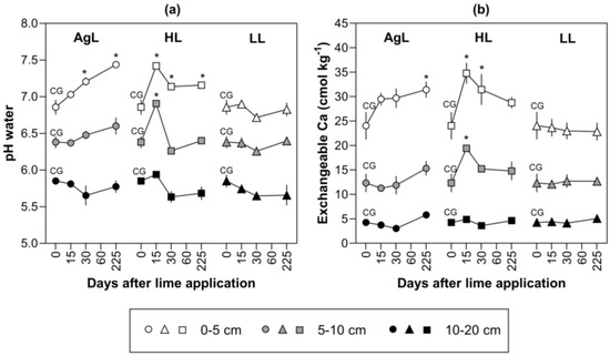 - Caires, E.F.; Alleoni, L.R.; Cambri, M.A.; Barth, G. Surface application of lime for crop grain production under a no-till system. Agron. J. 2005, 97, 791–798. [Google Scholar] [CrossRef]