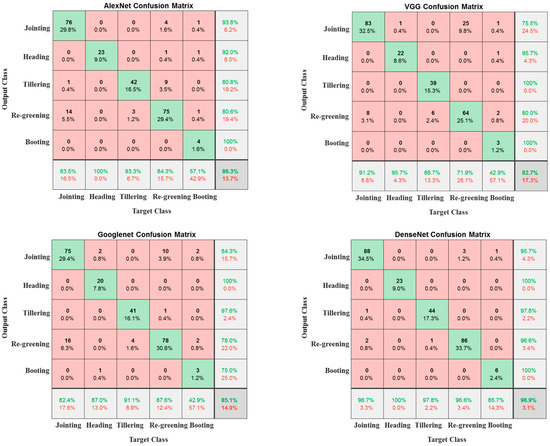 3.2. Comparison with Other Models Used in the Existing Classification Methods of Growth Stages