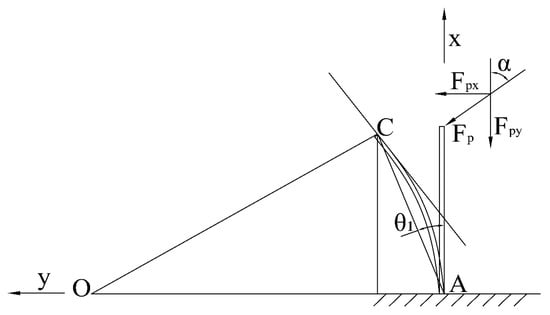 The resultant force of the concentrated load generated by the auxiliary airflow in the horizontal direction acts on the cantilever beam, producing the deformation equation as follows: