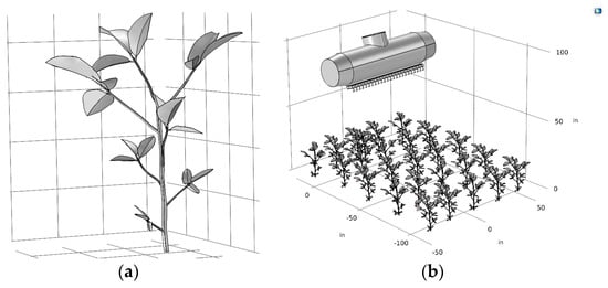 (a) Plant model; (b) droplet deposition simulation model.