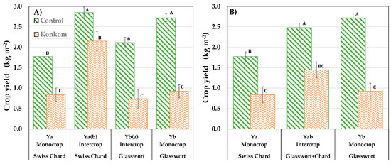 | (a) Chard | Ya = 1.77 (±0.09) | 0.5 × Ya(b) = 1.42 (±0.06) | LER(a) = 0.80 (±0.07) | Ya = 0.84 (±0.16) | 0.5 × Ya(b) = 1.07 (±0.11) | LER(a) = 1.28 (±0.37) |