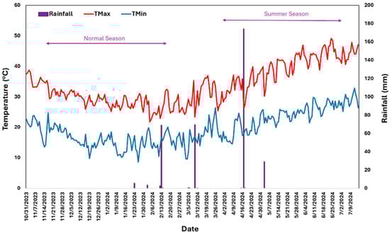 Daily weather data collected during the crop growth period in normal and summer seasons.