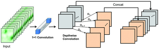 where is the weight matrix of the depthwise convolution. Finally, the output feature map is obtained by concatenating the following and :
