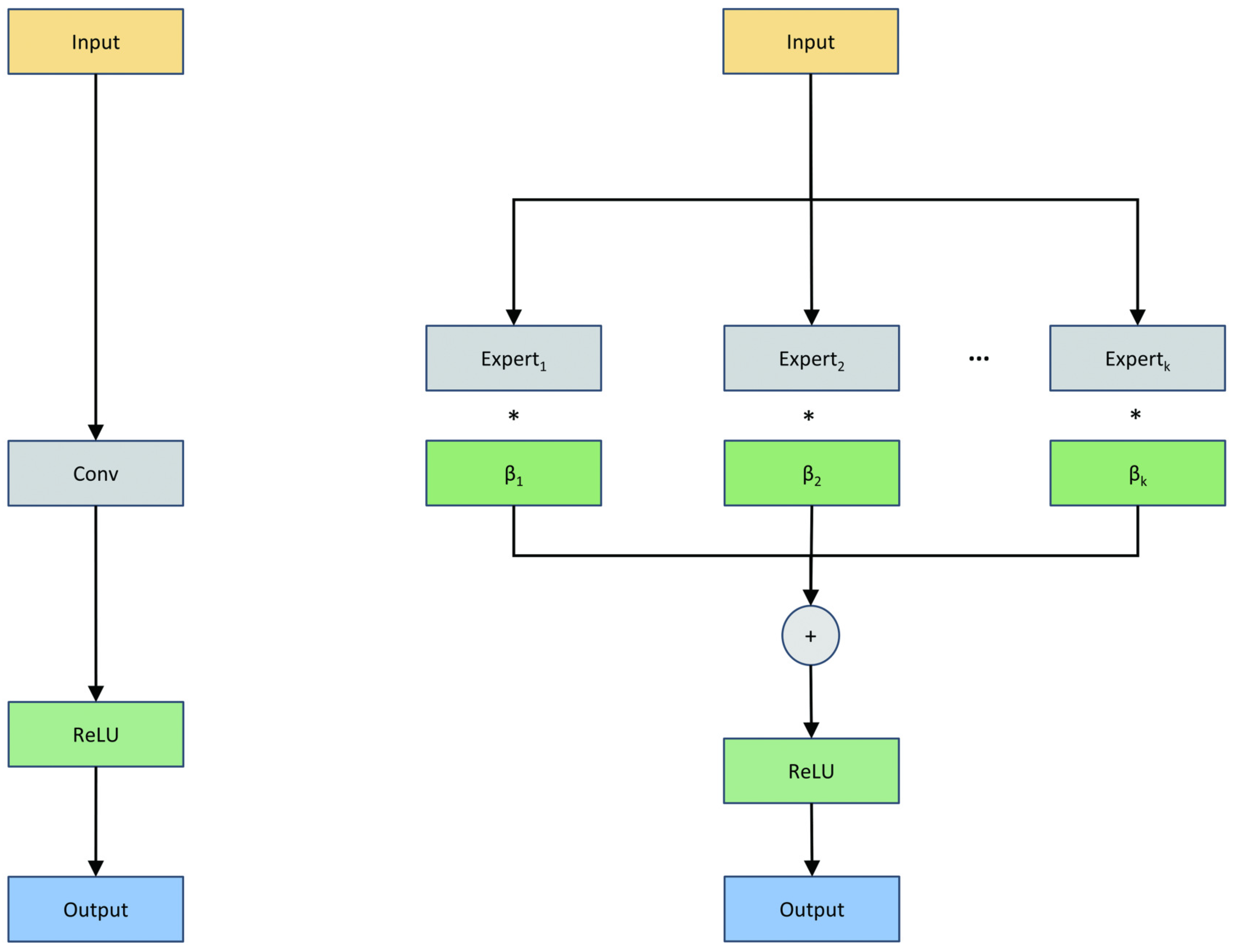In our implementation, Dynamic Convolution consists of K experts (with in this study), labeled from expert 1 to expert K. The principle is illustrated in Figure 7. The operation of Dynamic Convolution can be expressed as follows: