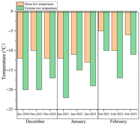 Six peach varieties, ‘Ziyan Ruiyu’, ‘Ziyan Ruiyang’, ‘Ziyan Ruiqiu’, ‘Ganlu Shumi’, ‘Ganlu Qiumi’, and ‘Ganlu Shuangmi’, were selected as the experimental materials, which are Gansu local cold-resistant resources offspring. The control variety used in this study was ‘Qingpi Liguang’ (Gansu local resources). The branches were sampled from the Gansu Academy of Agricultural Sciences Peach Germplasm Repository, located in Gansu province, China. All the resources’ rootstocks consisted of Honghua Shantao (P. davidiana Franch). On 15 January 2022 (Figure 1), a total of 80 branches of equal length (25–30 cm) and diameter (0.8–1.0 cm) were collected from all sides of five-year-old trees. The branches were cleaned using distilled water, and their shoot scissors were sealed with paraffin wax. Each branch was divided into eight groups, and each group was carefully wrapped with gauze and plastic bags for protection during subsequent treatments. The groups were randomly assigned to seven adjustable temperature incubators, set to temperatures of −5 °C (control), −10 °C, −15 °C, −20 °C, −25 °C, −30 °C and −35 °C. The cold treatment lasted for 12 h, and the cooling or heating rate was 4 °C/h. After cold exposure, the middle parts of the branches (excluding flower and leaf buds) were sampled promptly and frozen in liquid nitrogen before being stored at −80 °C until further use (electrolyte leakage measurements excluded freezing effects). Branch materials were obtained from three different trees as independent biological replicates.