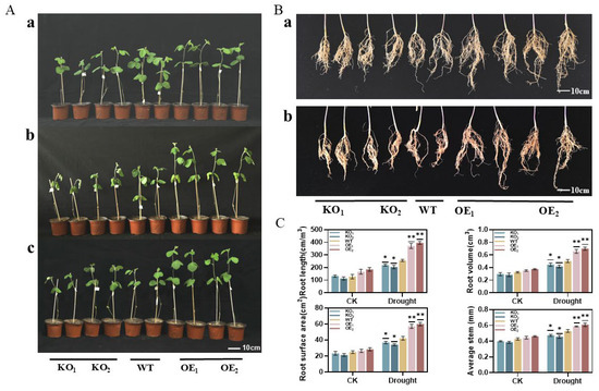 3.7. Root Changes in Overexpressed Soybean Hairy Roots Under Drought Stress