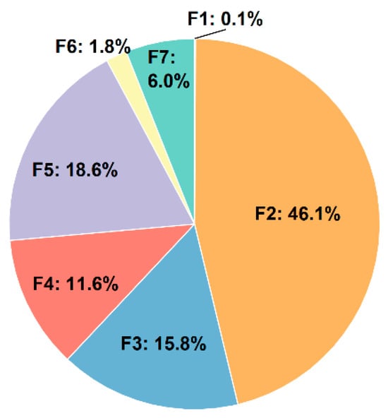 Chemical fractions of Cd in the experimental soil. F1: water-soluble fraction, F2: exchangeable fraction, F3: carbonate fraction, F4: humic acid bound fraction, F5: Fe-Mn oxides bound fraction, F6: strong organically bound fraction, and F7: residual fraction.