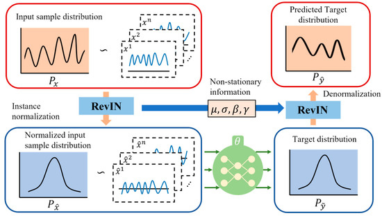 Long-term time-series forecasting tasks frequently encounter the challenge of distribution shift, which arises from temporal changes in the mean and variance [29]. Such distribution shifts create a discrepancy between the distributions of training and testing data, resulting in input sequences that possess different underlying distributions. This discrepancy can significantly diminish the predictive performance of the model. During the forecasting process, models often struggle to extract meaningful features from non-stationary sequences [30]. Normalizing the original data can help stabilize their statistical properties, thereby enhancing their suitability for model training. However, this normalization process may lead to the loss of critical non-stationary information present in the original sequence [31]. Consequently, after normalization, the model learns exclusively from the standardized data, neglecting the non-stationary information inherent in the original data, which may further exacerbate the distribution shift issue.