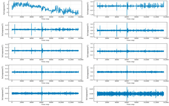 The experimental software environment is based on Python 3.8.0 and the PyTorch 1.9.0 deep-learning framework. The hardware environment uses an RTX 3090 GPU with 24 GB of memory. This study’s experiments mainly cover three areas. Initially, the influence of distinct signal decomposition subsequences on prediction accuracy is assessed to evaluate the effectiveness of the proposed adaptive signal decomposition algorithm. Subsequently, the performance of various methods on greenhouse environmental datasets across different temporal scales is evaluated, while also assessing the effectiveness of various signal decomposition algorithms in time-series forecasting. Both experiments employ MAE, RMSE, MAPE, and R2 as evaluation metrics.