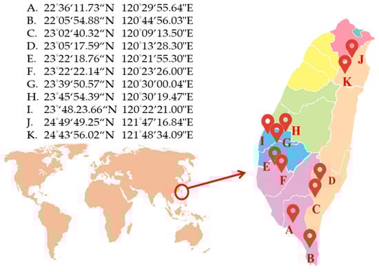 - Ministry of Agriculture, Executive Yuan, R.O.C. (Taiwan). Rice Planting Schedule. Available online: https://eng.moa.gov.tw/ (accessed on 17 October 2024).