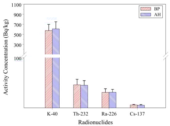 - Alzubaidi, G.; Hamid, F.; Abdul Rahman, I. Assessment of natural radioactivity levels and radiation hazards in agricultural and virgin soil in the state of Kedah, North of Malaysia. Sci. World J. 2016, 2016, 6178103. [Google Scholar] [CrossRef]