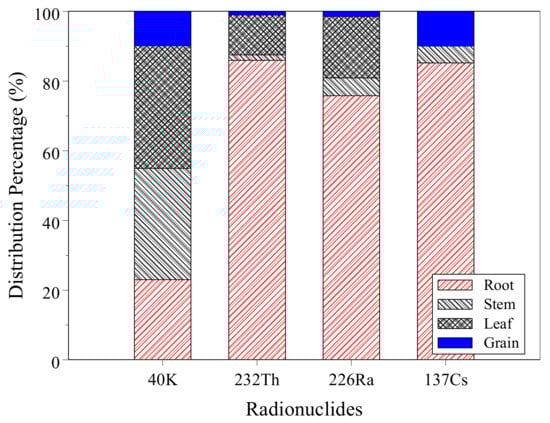 - Pulhani, V.; Dafauti, S.; Hegde, A.; Sharma, R.; Mishra, U. Uptake and distribution of natural radioactivity in wheat plants from soil. J. Environ. Radioact. 2005, 79, 331–346. [Google Scholar] [CrossRef]