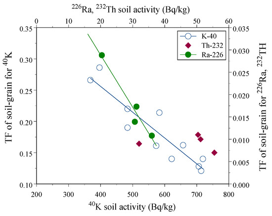 - Karunakara, N.; Rao, C.; Ujwal, P.; Yashodhara, I.; Kumara, S.; Ravi, P. Soil to rice transfer factors for 226Ra, 228Ra, 210Pb, 40K and 137Cs: A study on rice grown in India. J. Environ. Radioact. 2013, 118, 80–92. [Google Scholar] [CrossRef] [PubMed]