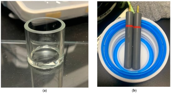 First, an ion-selective membrane solution was mixed and dissolved in THF, following the composition outlined in Table 1; then, it was poured into a 24 mm diameter glass ring to dry for over a day, resulting in the fabrication of the ion-selective electrode membrane (Figure 1a). Following this, the dried ion-selective PVC membrane was cut into 6 mm diameter pieces and attached to the end of a custom-made ion-selective electrode body, which had an outer diameter of 8 mm, a length of 52 mm, and an inner diameter of 3 mm, using THF (Figure 1b).