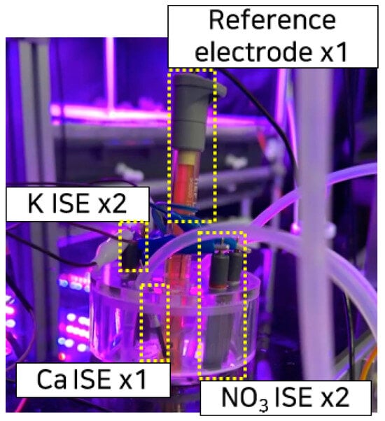 - Kim, H.-J.; Kim, W.-K.; Roh, M.-Y.; Kang, C.-I.; Park, J.-M.; Sudduth, K.A. Automated sensing of hydroponic macronutrients using a computer-controlled system with an array of ion-selective electrodes. Comput. Electron. Agric. 2013, 93, 46–54. [Google Scholar] [CrossRef]