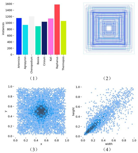 Data annotation was performed using LabelMe software. Trained personnel conducted detailed labeling of each image by consulting local wheat field farmers to ensure accurate identification of weed species. Additionally, all annotations were reviewed and verified by weed specialists to guarantee the precision and consistency of the labeling, with each weed species labeled using its Latin scientific name. On average, each image contained 1 to 5 annotation boxes, resulting in a total of 10,127 initial annotation boxes. After the initial labeling, weed experts carefully reviewed the annotations to address cases involving overlapping or occluded weeds and ensure labeling accuracy.