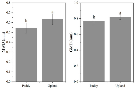- Li, X.; Zhang, H.; Sun, M.; Xu, N.; Sun, G.; Zhao, M. Land use change from upland to paddy field in Mollisols drives soil aggregation and associated microbial communities. Appl. Soil Ecol. 2020, 146, 103351. [Google Scholar] [CrossRef]