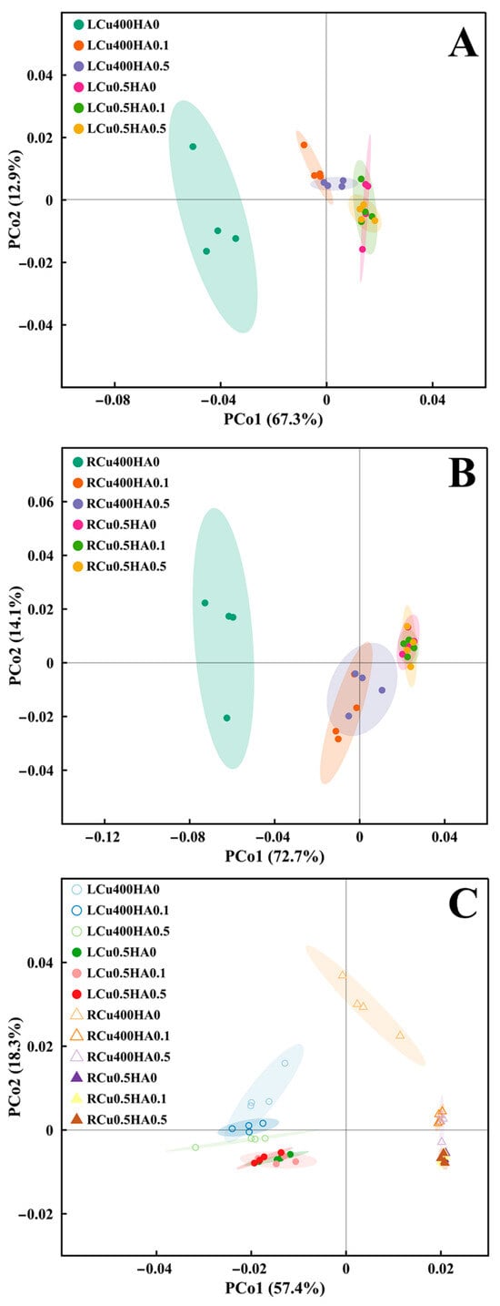 - Cai, L.-Y.; Zhang, J.; Ren, Q.-Q.; Lai, Y.-H.; Peng, M.-Y.; Deng, C.-L.; Ye, X.; Yang, L.-T.; Huang, Z.-R.; Chen, L.-S. Increased pH-mediated alleviation of copper-toxicity and growth response function in Citrus sinensis seedlings. Sci. Horti. 2021, 288, 110310. [Google Scholar] [CrossRef]