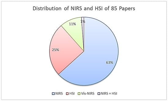 Similarly, dimensionality reduction methods such as Principal Component Analysis (PCA), t-Distributed Stochastic Neighbour Embedding (t-SNE), or feature selection techniques are crucial for handling the high dimensionality and redundancy inherent in NIRS and HSI data []. These methods reduce the computational complexity, mitigate overfitting, and highlight the most informative features for analysis.