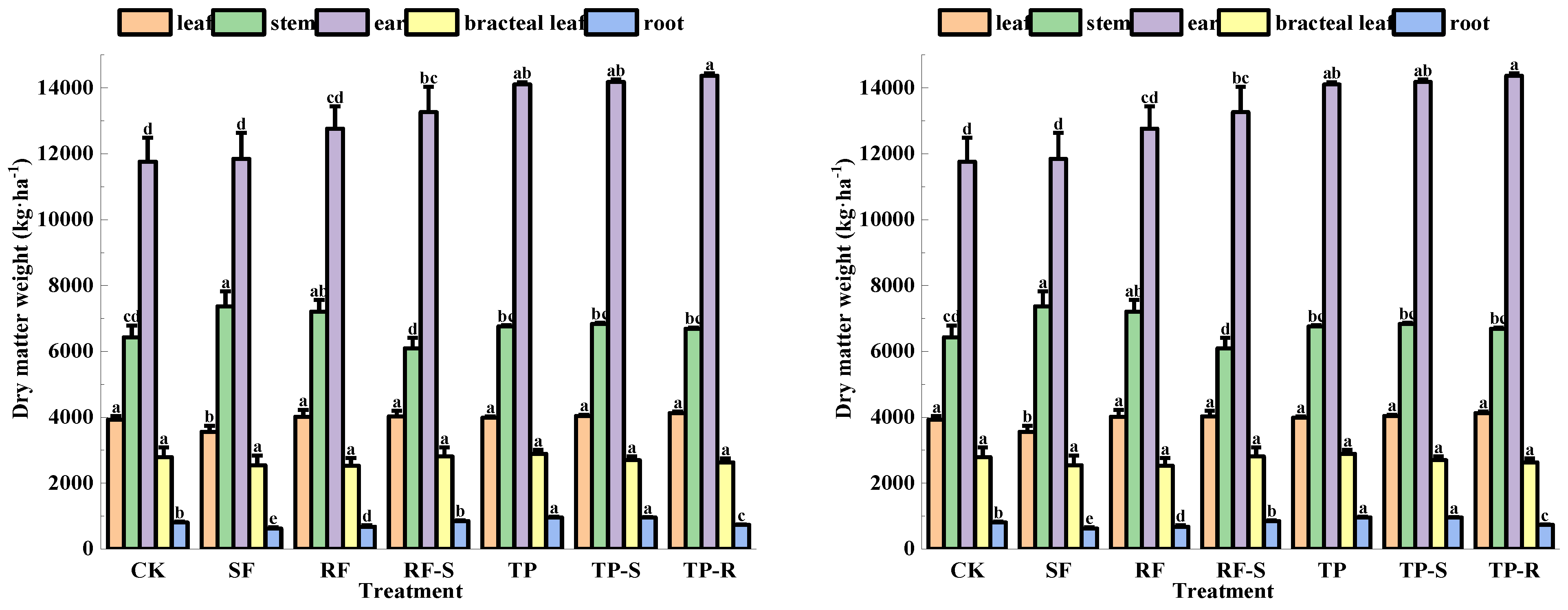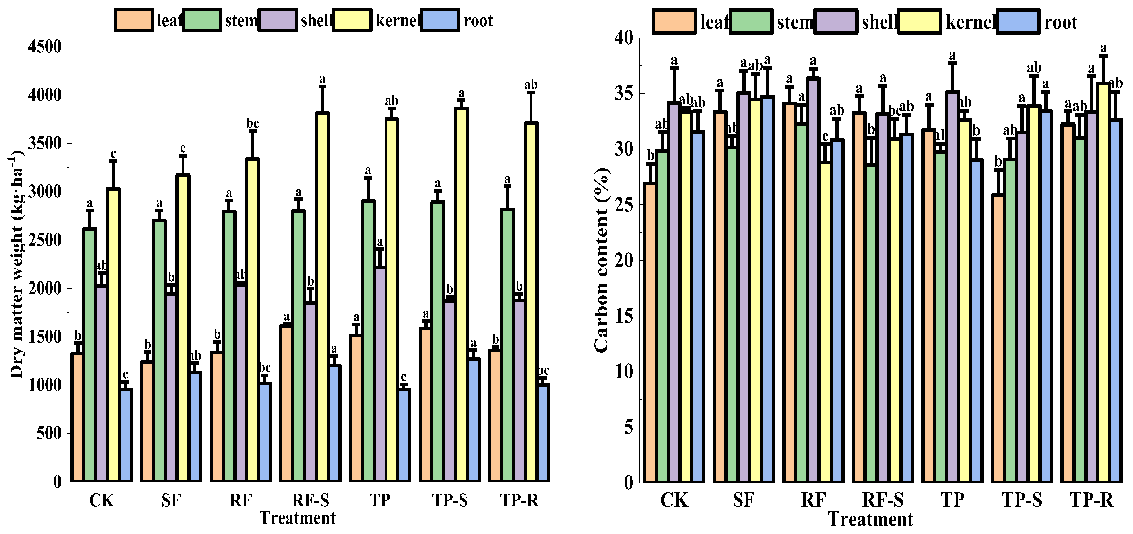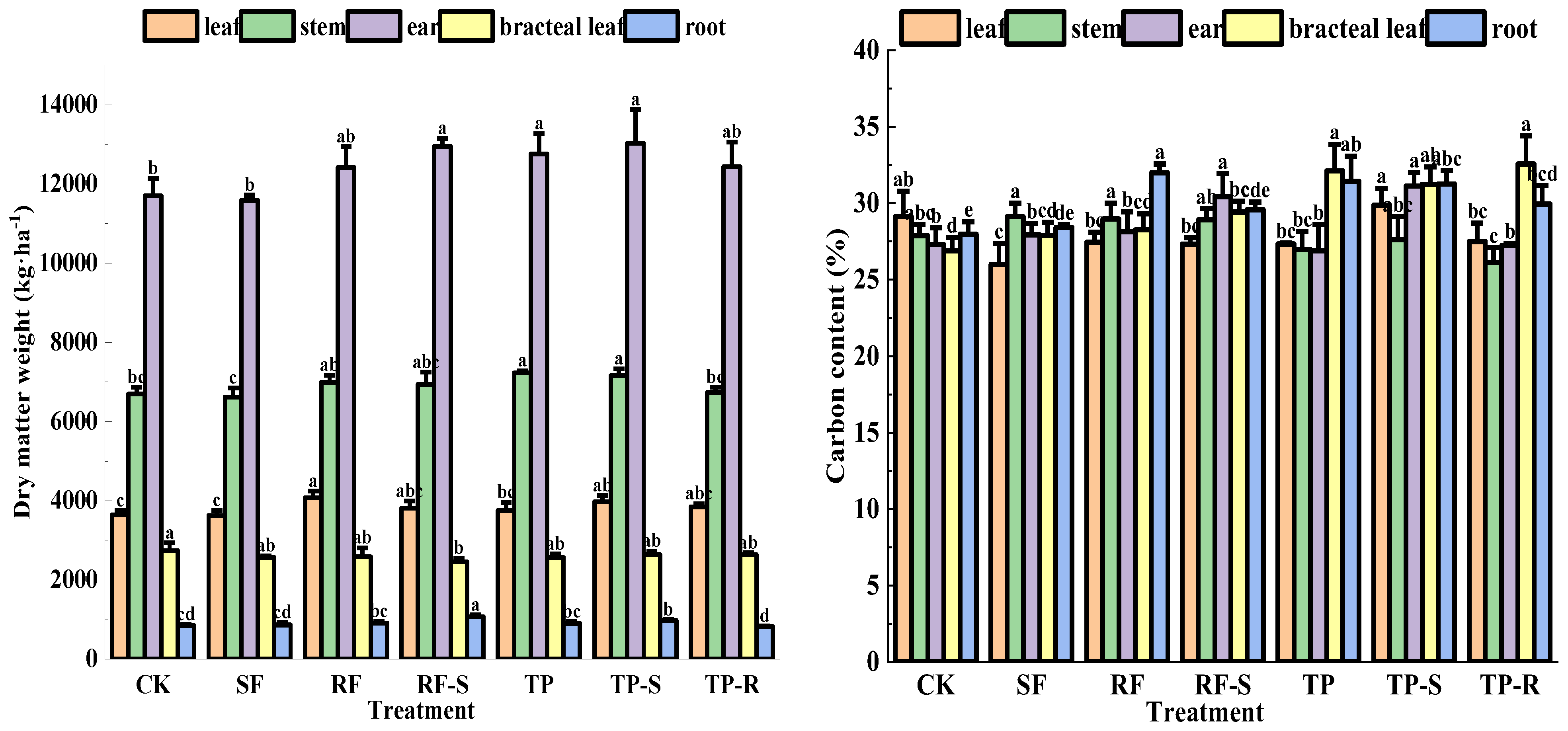 2.5. Dry Matter Mass, Carbon Content, Runoff Carbon Loss and Net Primary Productivity (NPP) of Each Organ After Harvest Were Measured