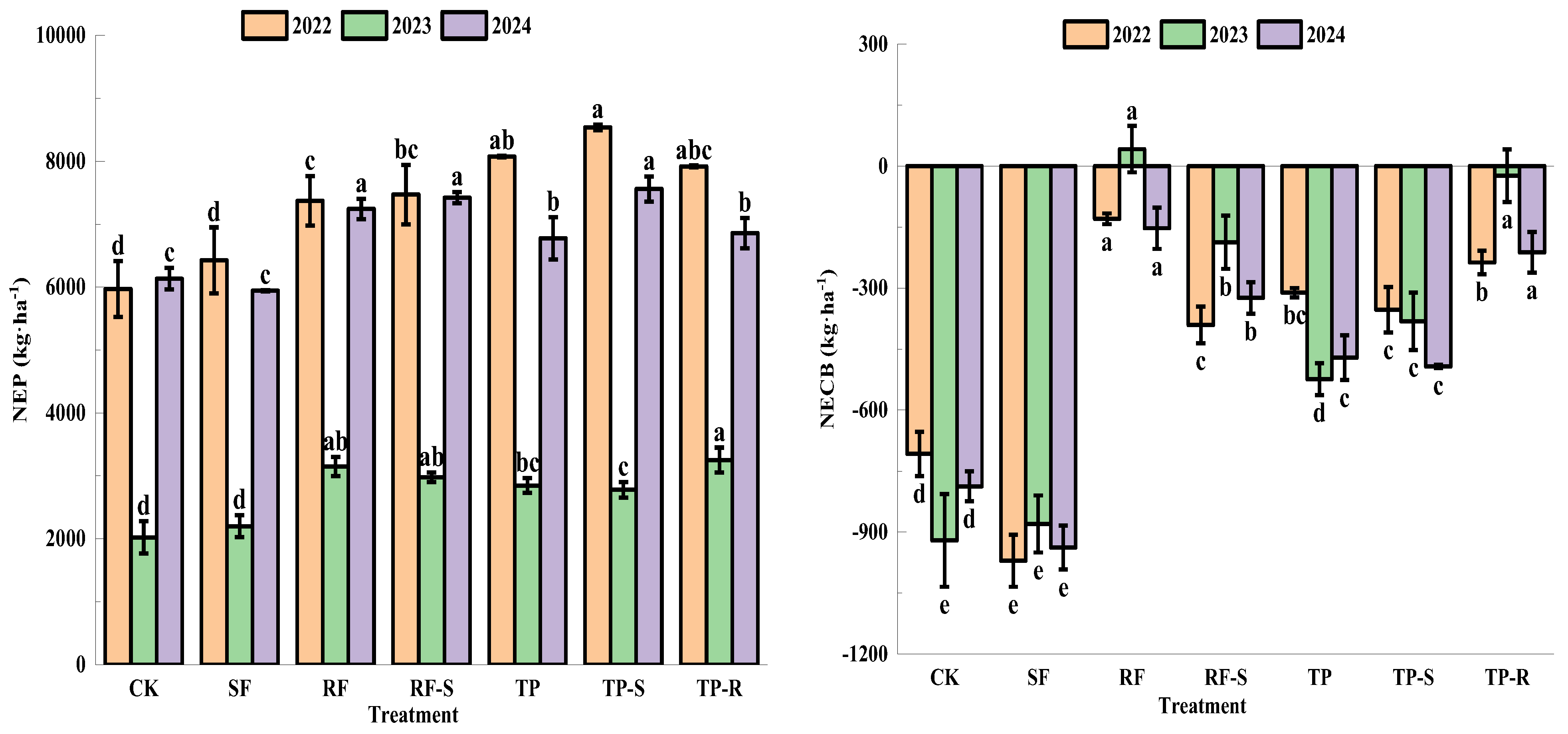 2.6. Net Ecosystem Productivity (NEP), Net Ecosystem Carbon Balance (NECB) and Net Ecosystem Carbon Balance (NCF) Were Calculated
