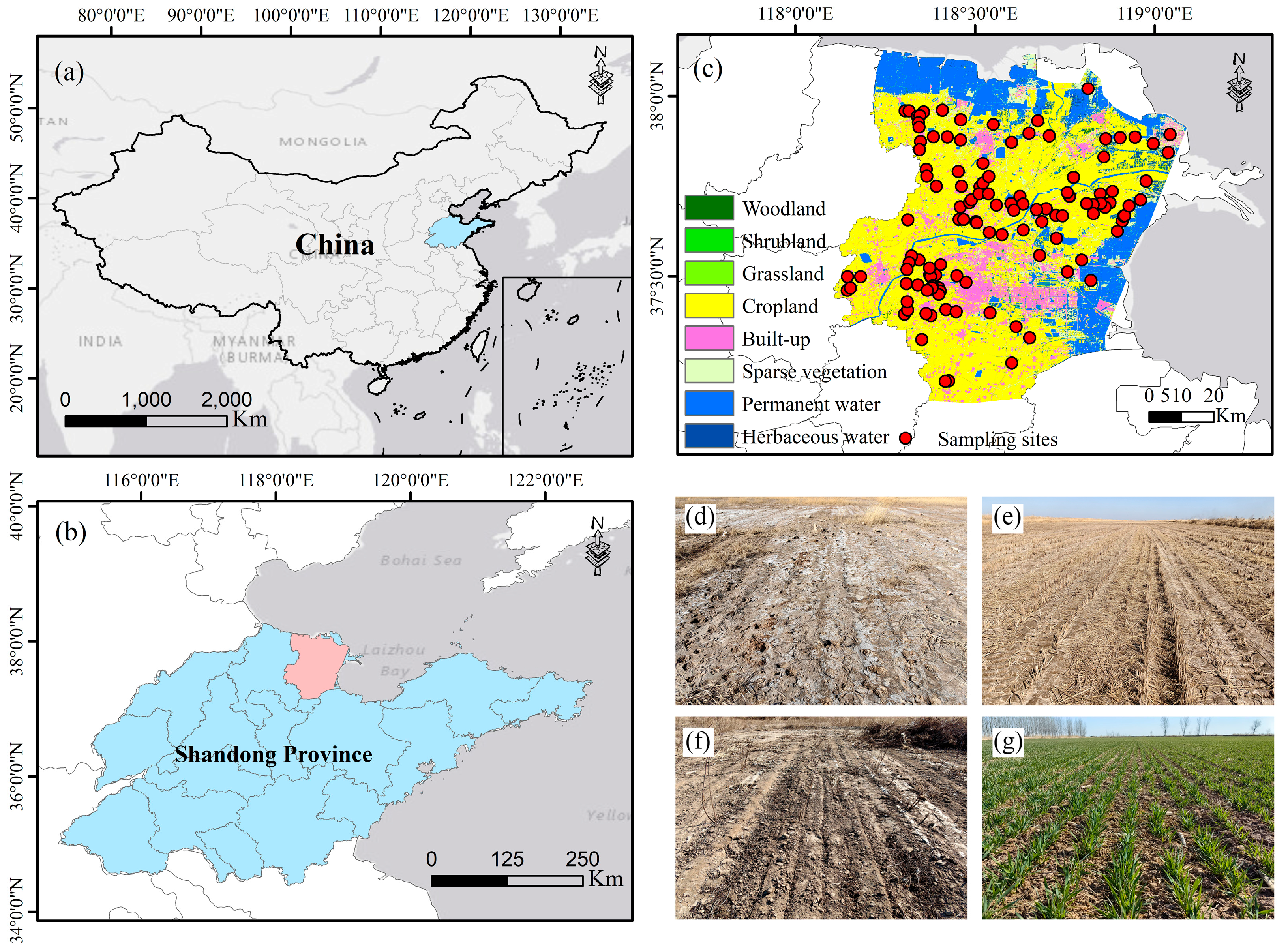 - Fu, Y.; Wang, P.; Cao, W.; Fu, S.; Zhang, J.; Li, X.; Guo, J.; Huang, Z.; Chen, X. Long-Term Assessment of Soil Salinization Patterns in the Yellow River Delta Using Landsat Imagery from 2003 to 2021. Land 2025, 14, 24. [Google Scholar] [CrossRef]