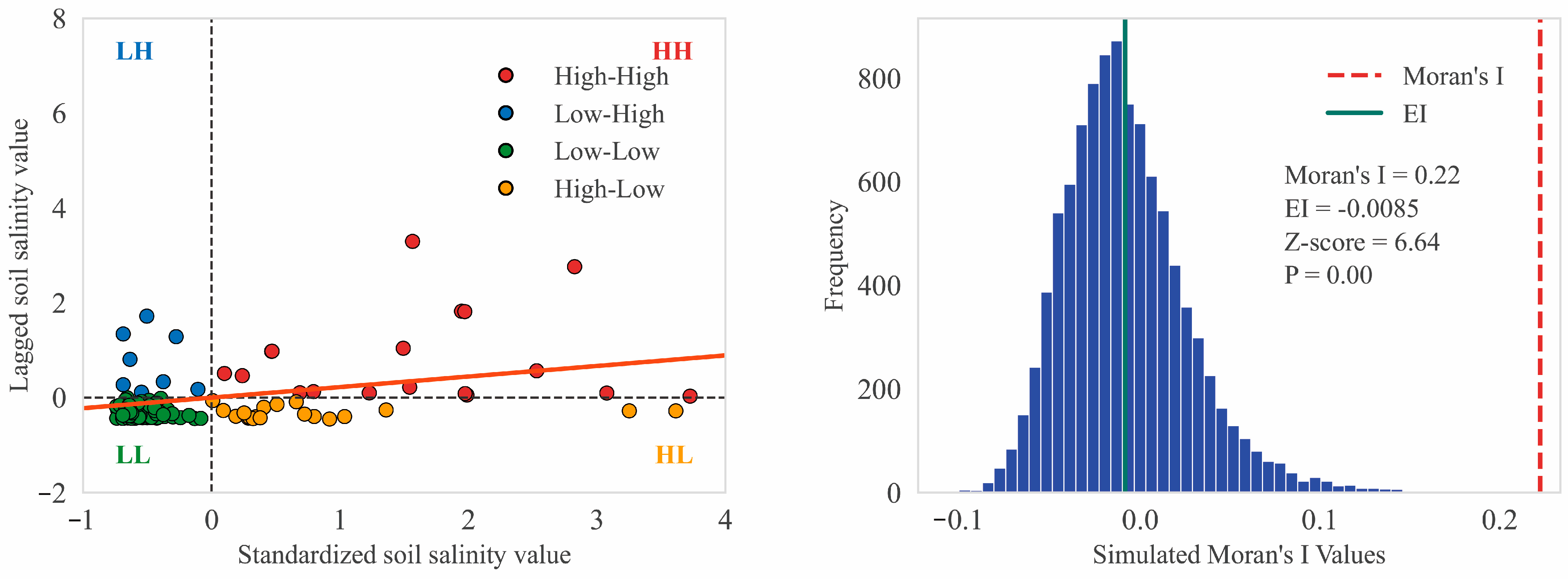 3.1. Descriptive Statistics and Spatial Autocorrelation Analysis