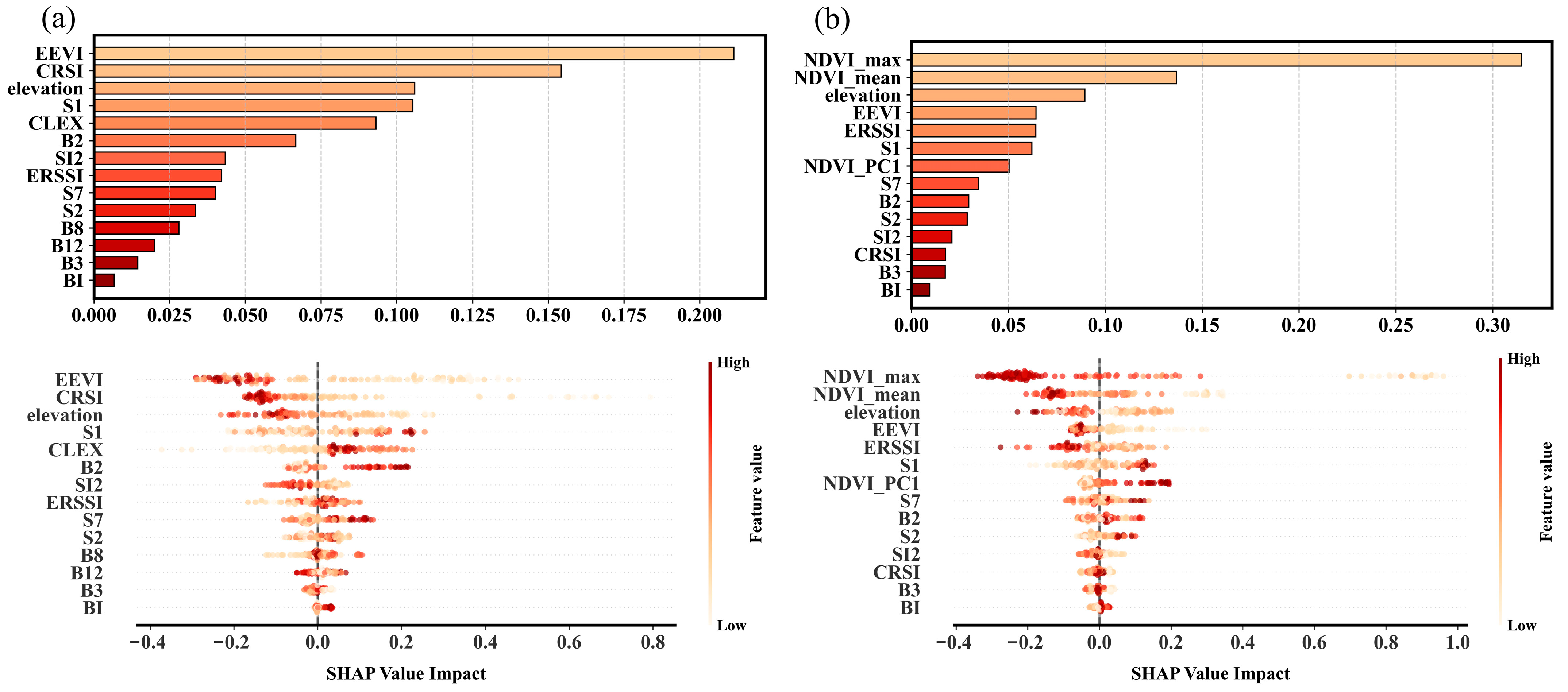- SHAP analysis reveals that vegetation factors and topographic factors serve as key predictors in both framework strategies. When vegetation temporal features are incorporated, they emerge as crucial predictive factors that effectively mitigate strong interference from spring tillage and residue cover, thereby maximizing the signal-to-noise ratio. The July–September vegetation characteristic window was identified as the optimal period for remote sensing-based inversion of soil salinity. The peak vegetation biomass during this period demonstrates a significant negative correlation with soil salinity levels in the following spring, indicating a clear lagged inhibitory effect of vegetation physiological activity on salt accumulation during this timeframe.