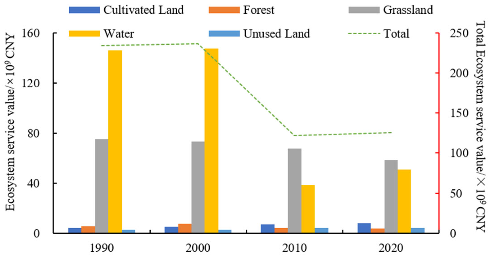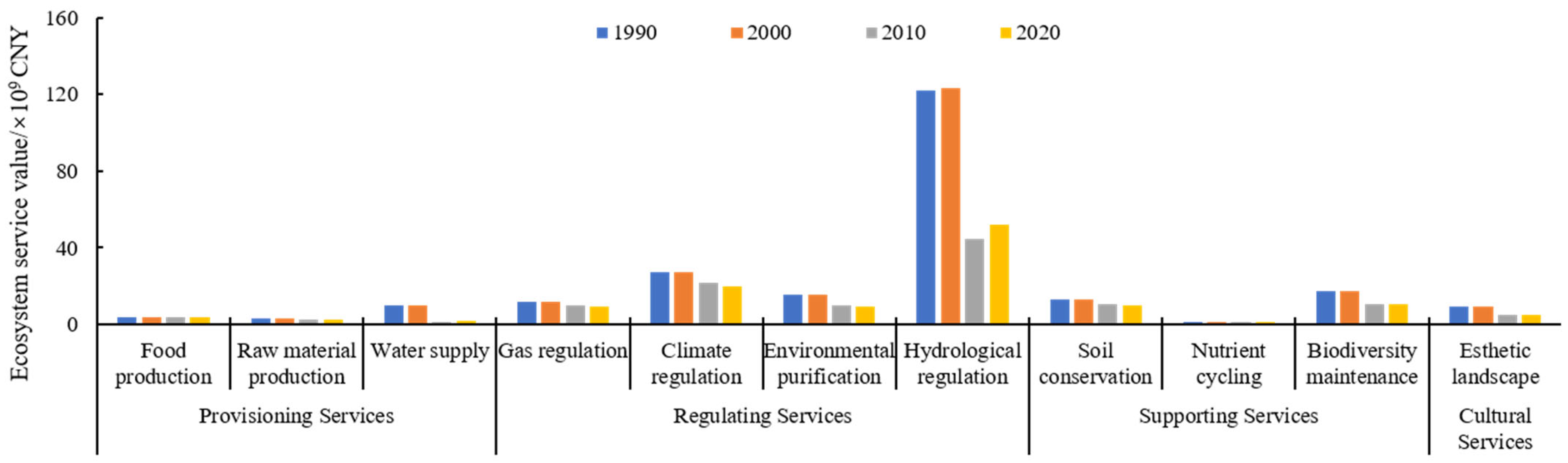 3.3.1. Temporal Variation in Ecosystem Service Value