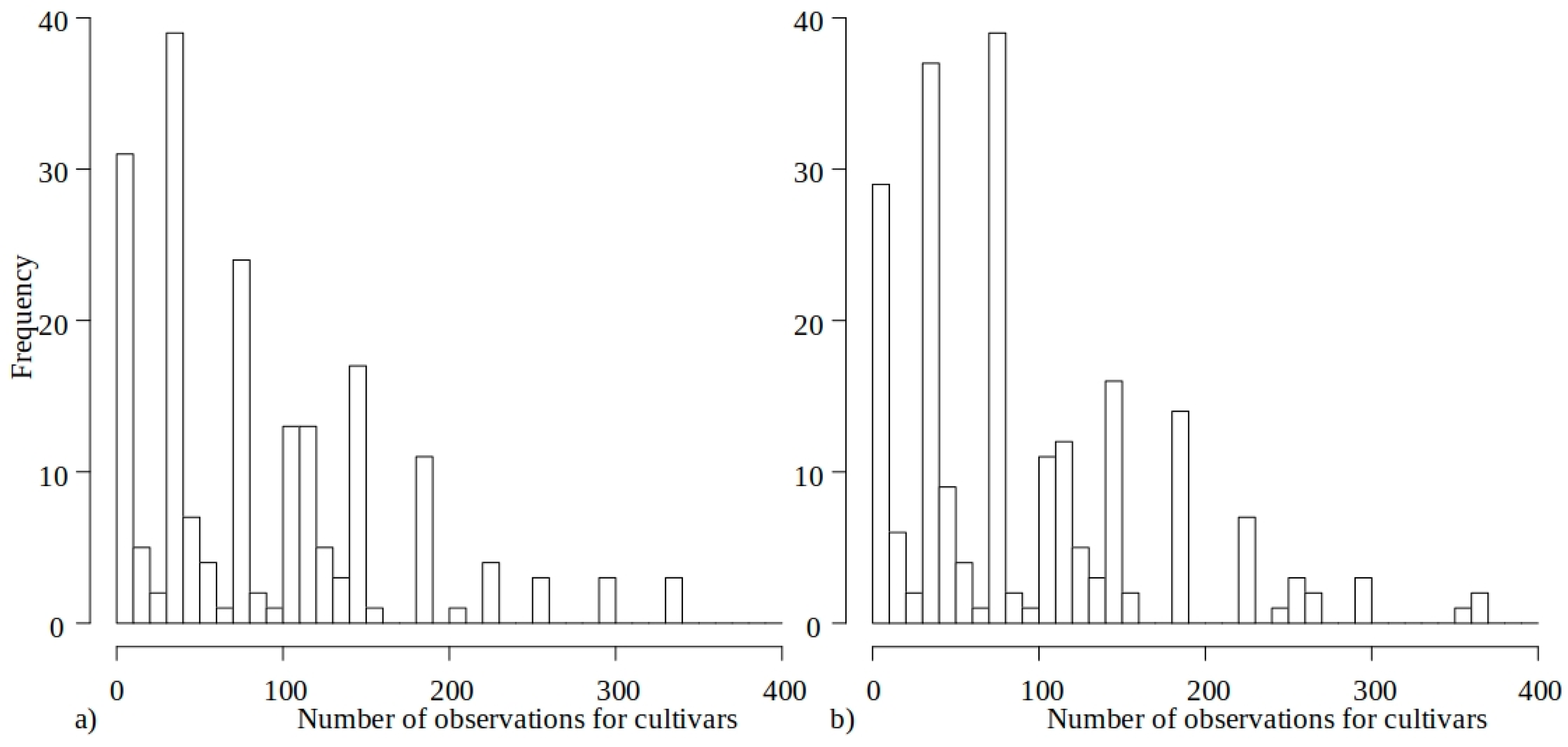 - Exclusion of cultivars with fewer than 30 observations across the 2015–2023 period.