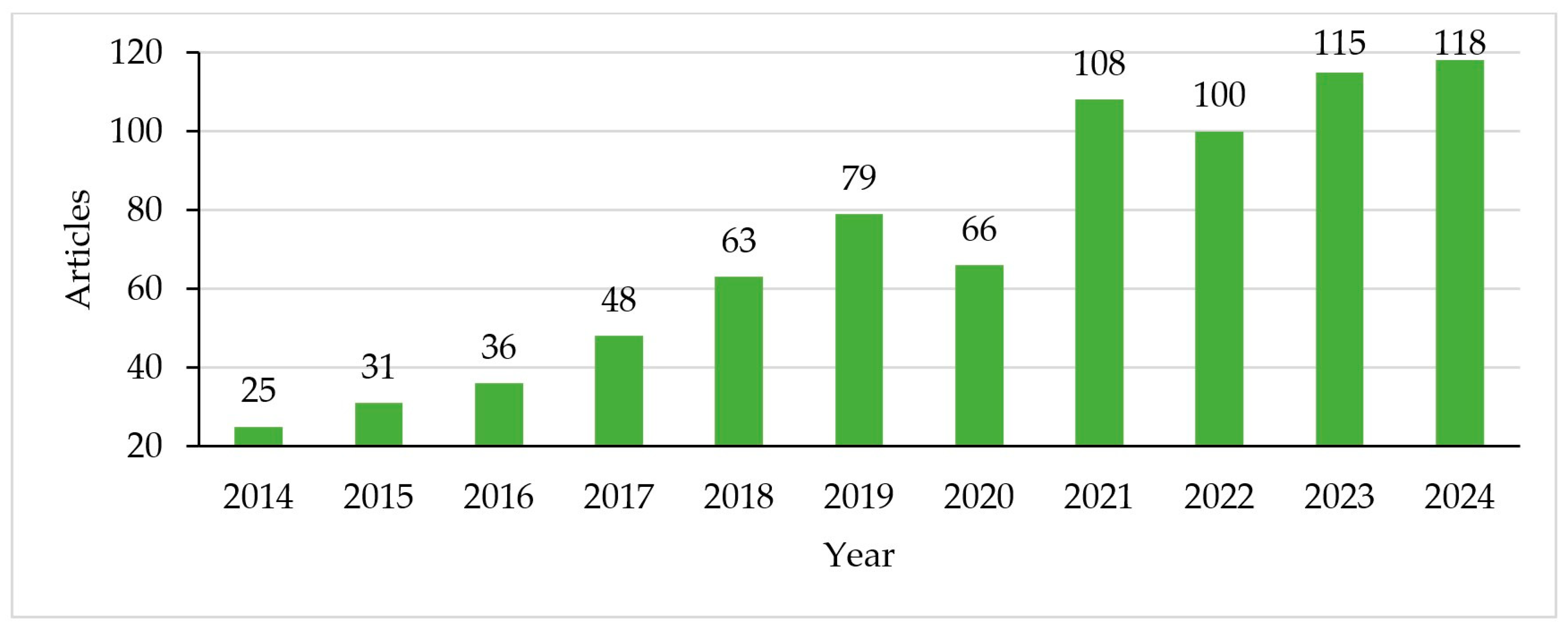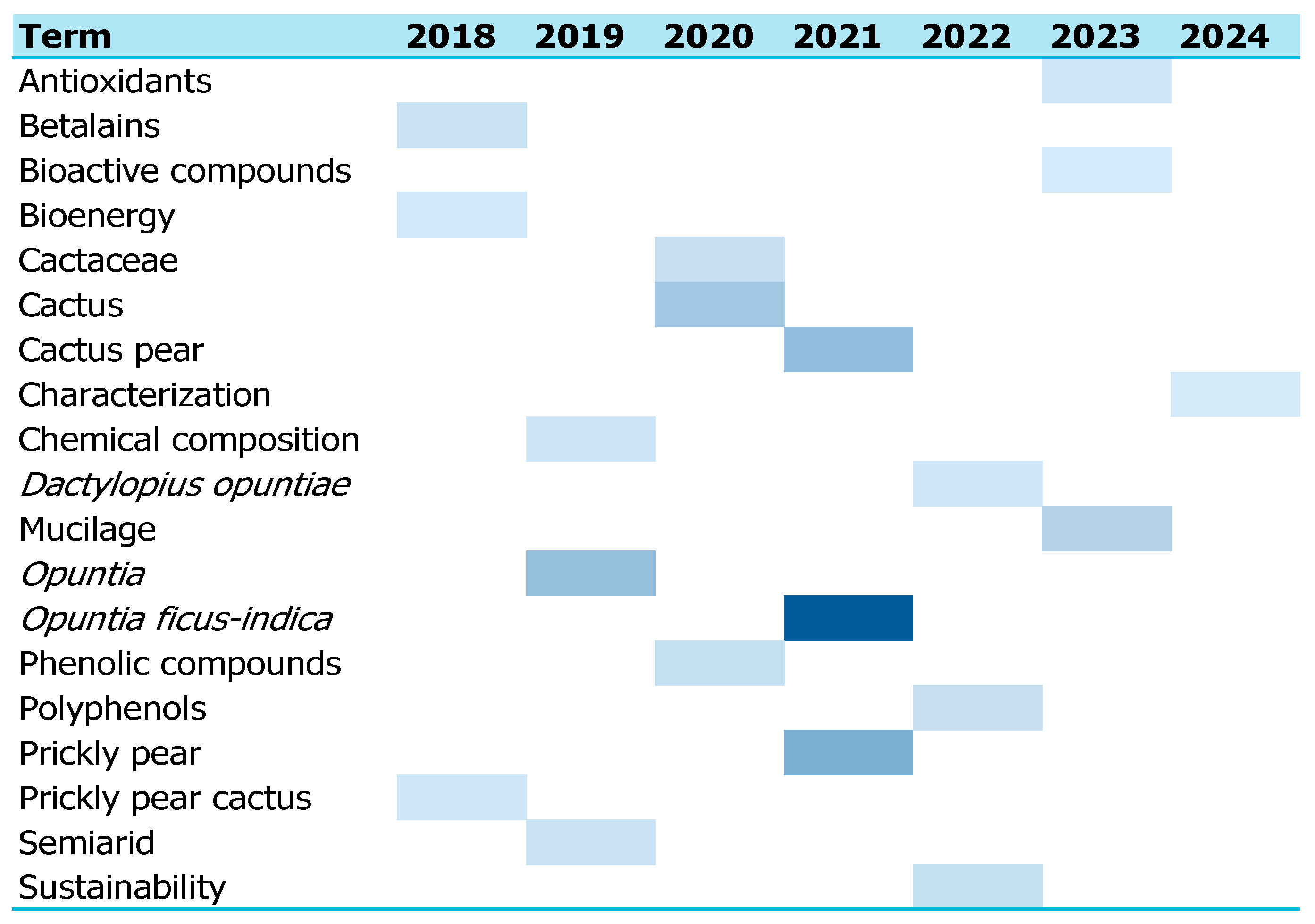 3.1. Description and Evolution of Scientific Production on Opuntia spp.