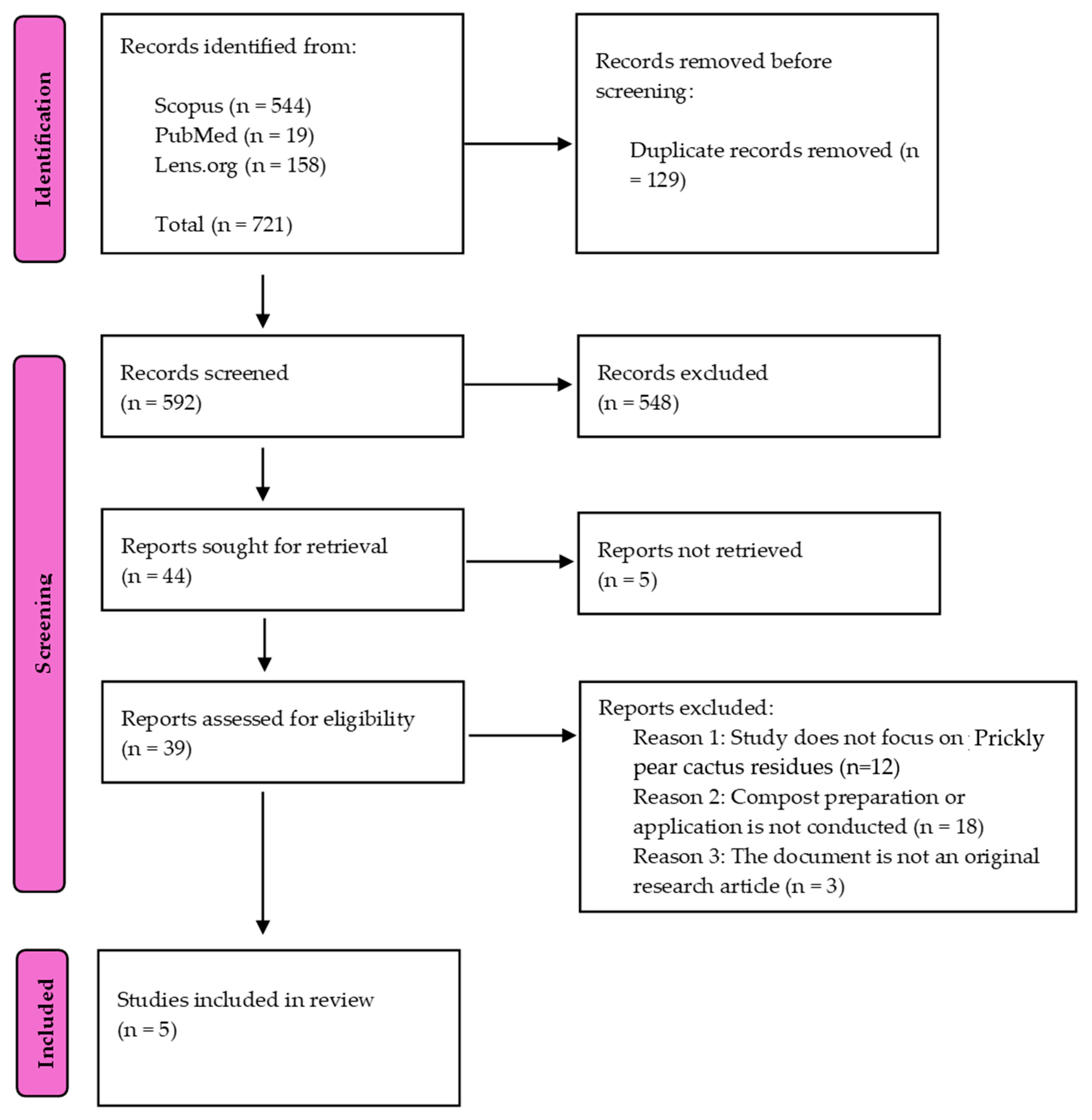 Escamilla-García et al. (2025) [31] | Standardize the composting process of cladodes residues for agricultural use. | Technical and economic analysis. | Windrow composting with manual turning using cladodes residues, cow manure, and grass for 120 days. | Not applicable. The study focused on compost production. | Final compost with a C:N ratio of 26.5 and 32.9% organic matter. | The standardized process is a technically and economically viable solution for the valorization of cladodes. |
