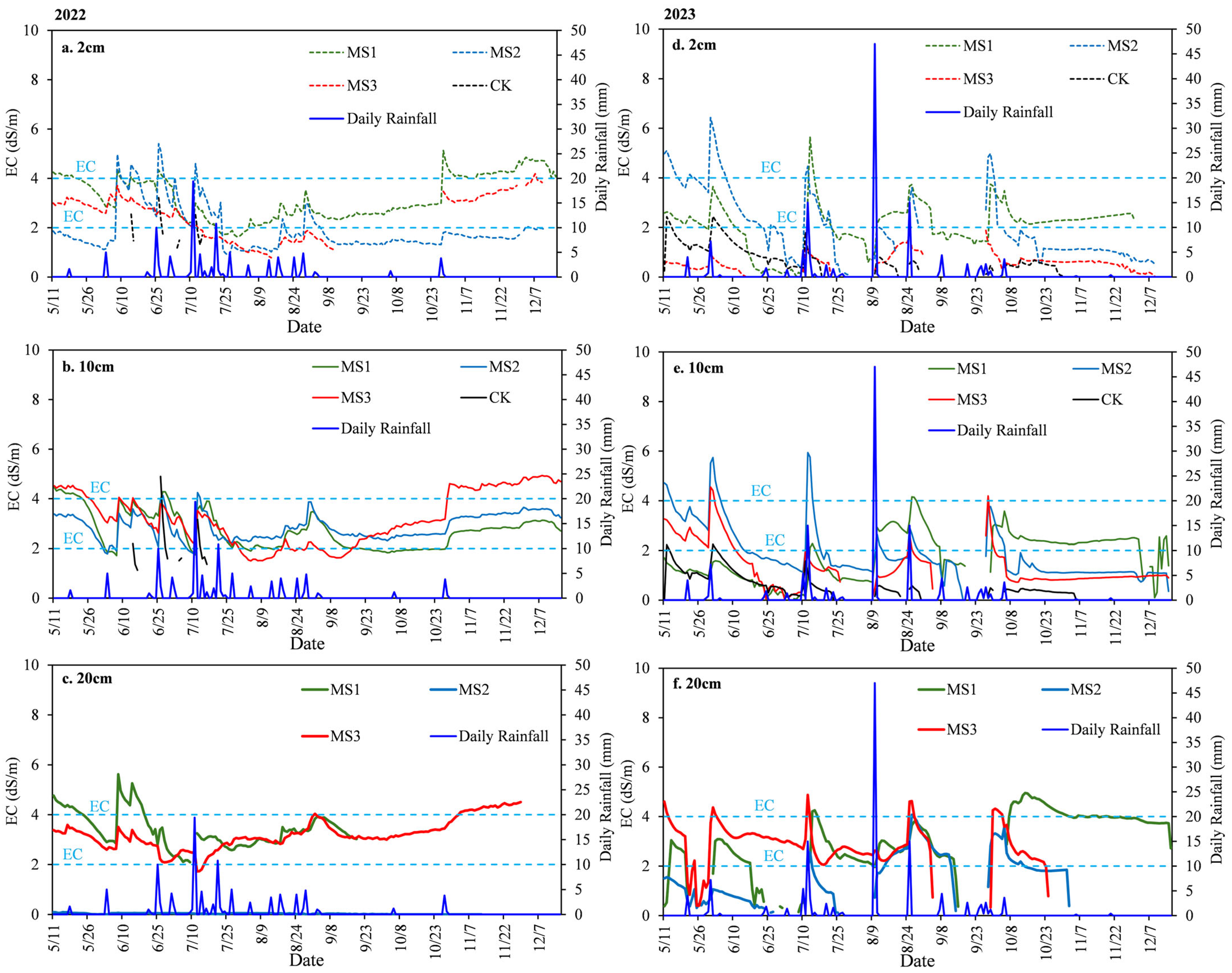 | Treatment | Electrical Conductivity (EC) (dS/m) | |||||