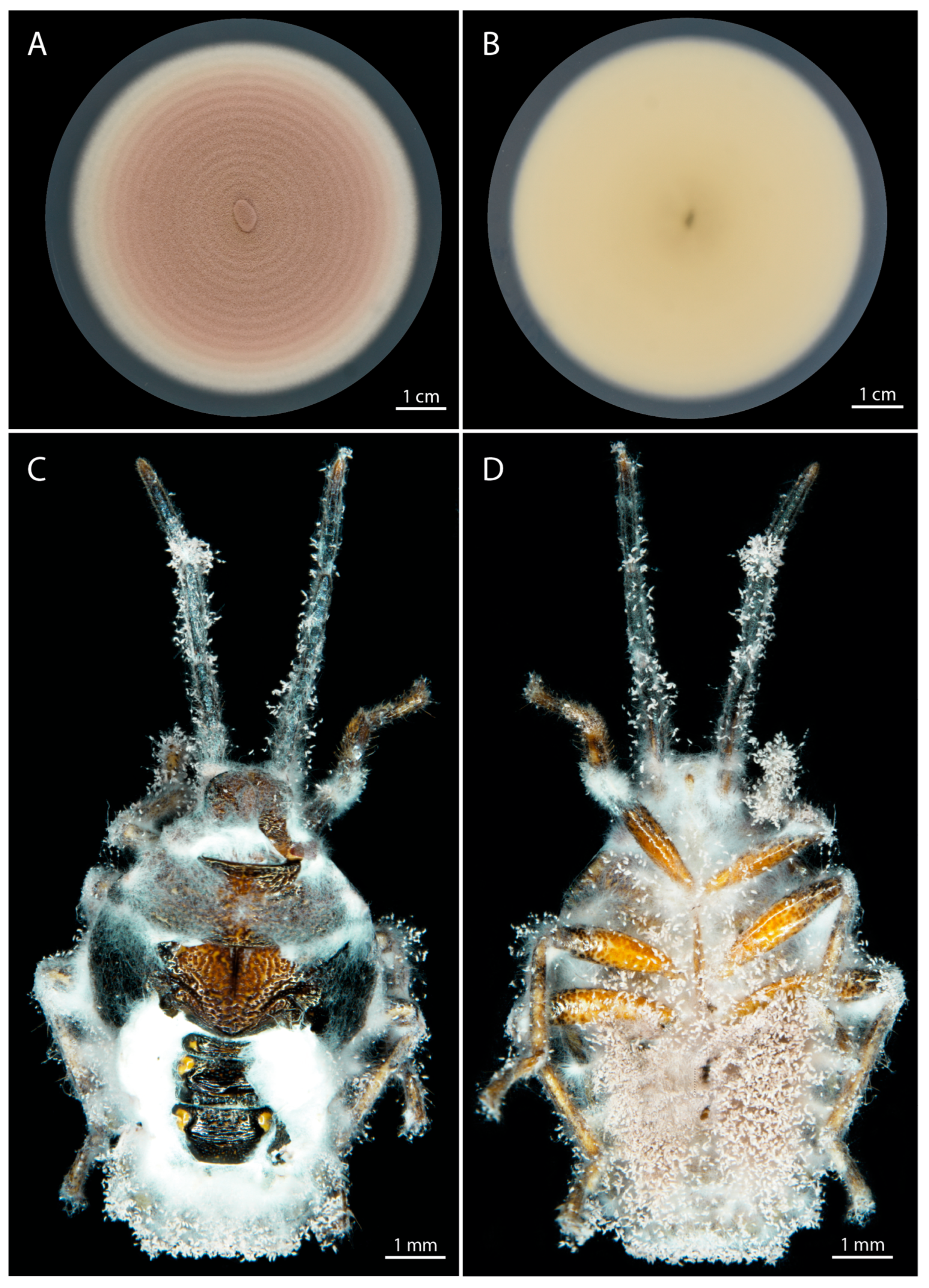 - Ban, S.; Azuma, Y.; Sato, H.; Suzuki, K.; Nakagiri, A. Isaria Takamizusanensis Is the Anamorph of Cordyceps Ryogamimontana, Warranting a New Combination, Purpureocillium Takamizusanense Comb. Nov. Int. J. Syst. Evol. Microbiol. 2015, 65, 2459–2465. [Google Scholar] [CrossRef]