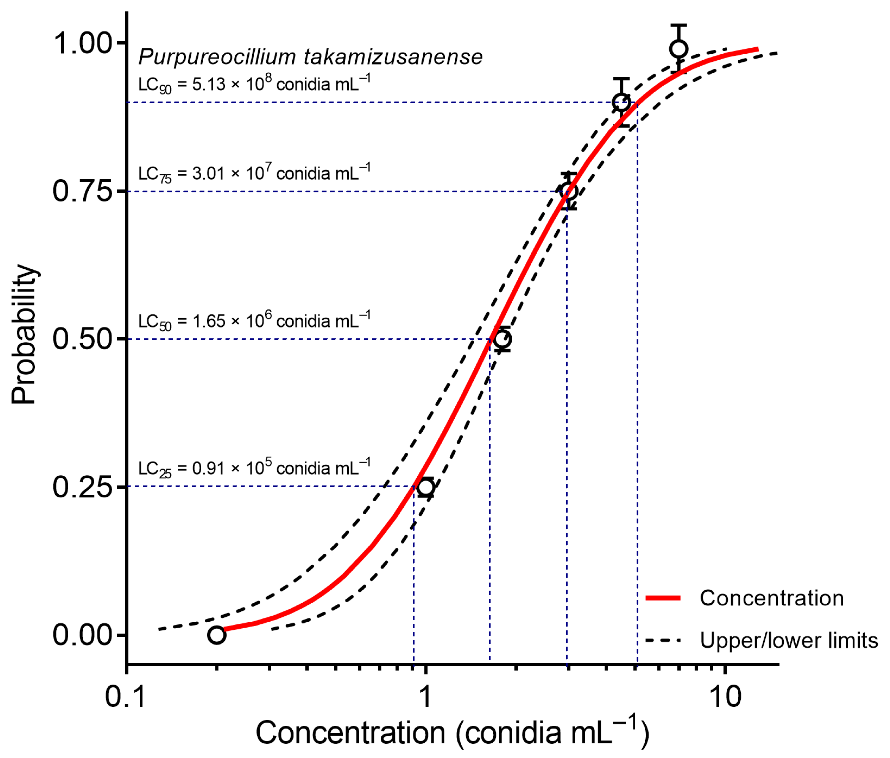 - Lo, P.-H.; El-Sayid Abdrabo, K.A.; Nai, Y.-S.; Lu, H.; Huang, Y.-T. Versatile Entomopathogenic Activity of Purpureocillium Takamizusanense against Diverse Agricultural Pests. bioRxiv 2025. [Google Scholar] [CrossRef]