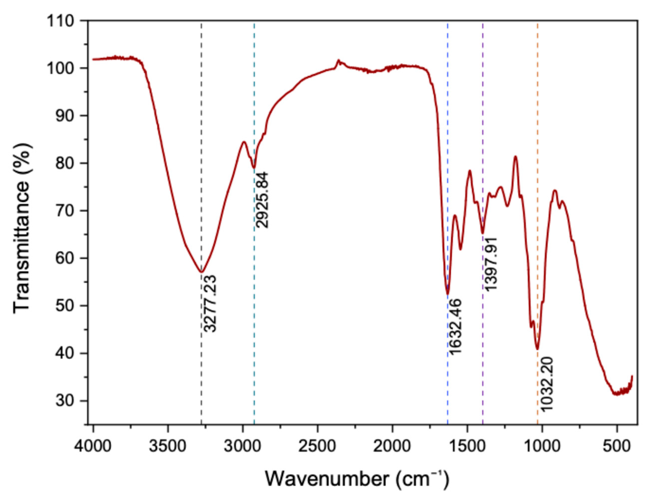 2.8. Fourier Transform Infrared Spectroscopy (FTIR) Analysis