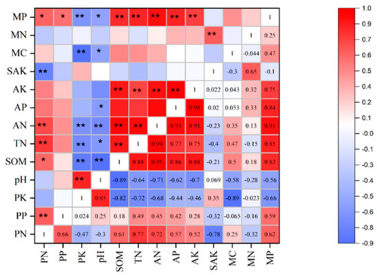 | pH | SOM (g/kg) | TN (g/kg) | AN (mg/kg) | AP (mg/kg) | AK (mg/kg) | SAK (mg/kg) | MBP (mg/kg) | MBC (mg/kg) | MBN (mg/kg) | |