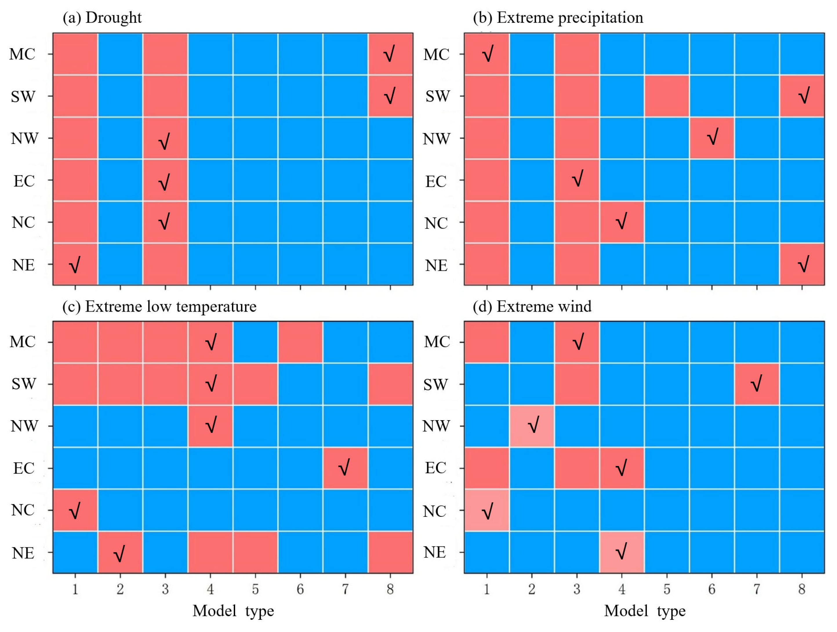 2.4. Selection of the Most Suitable Model for the Impact of ECEs on Crop Yields