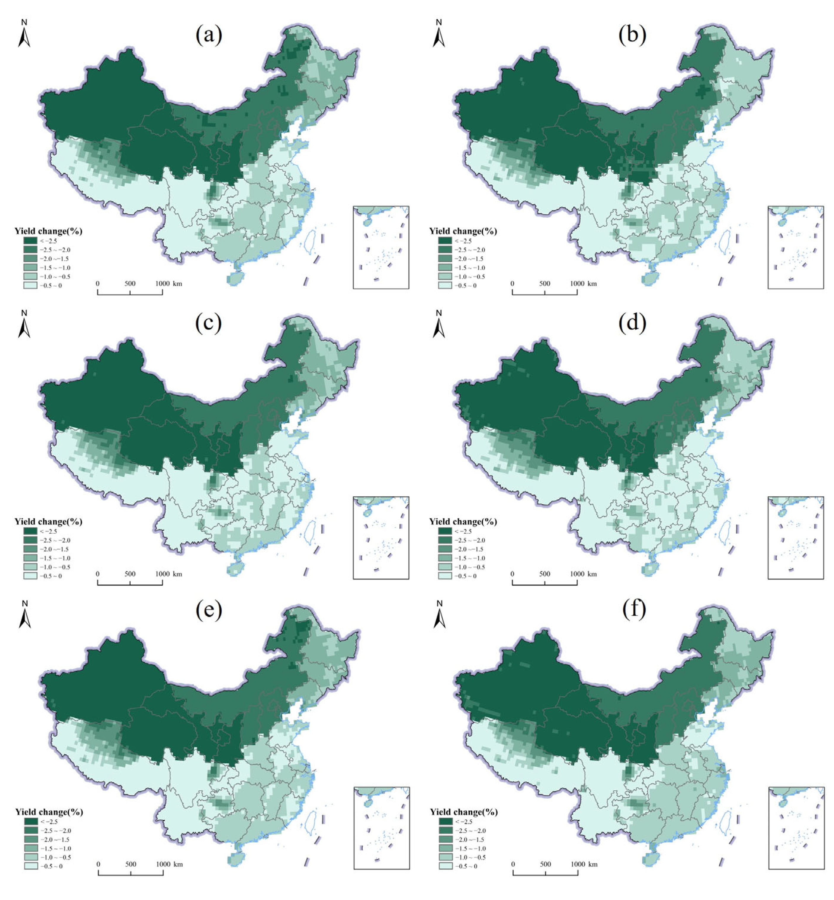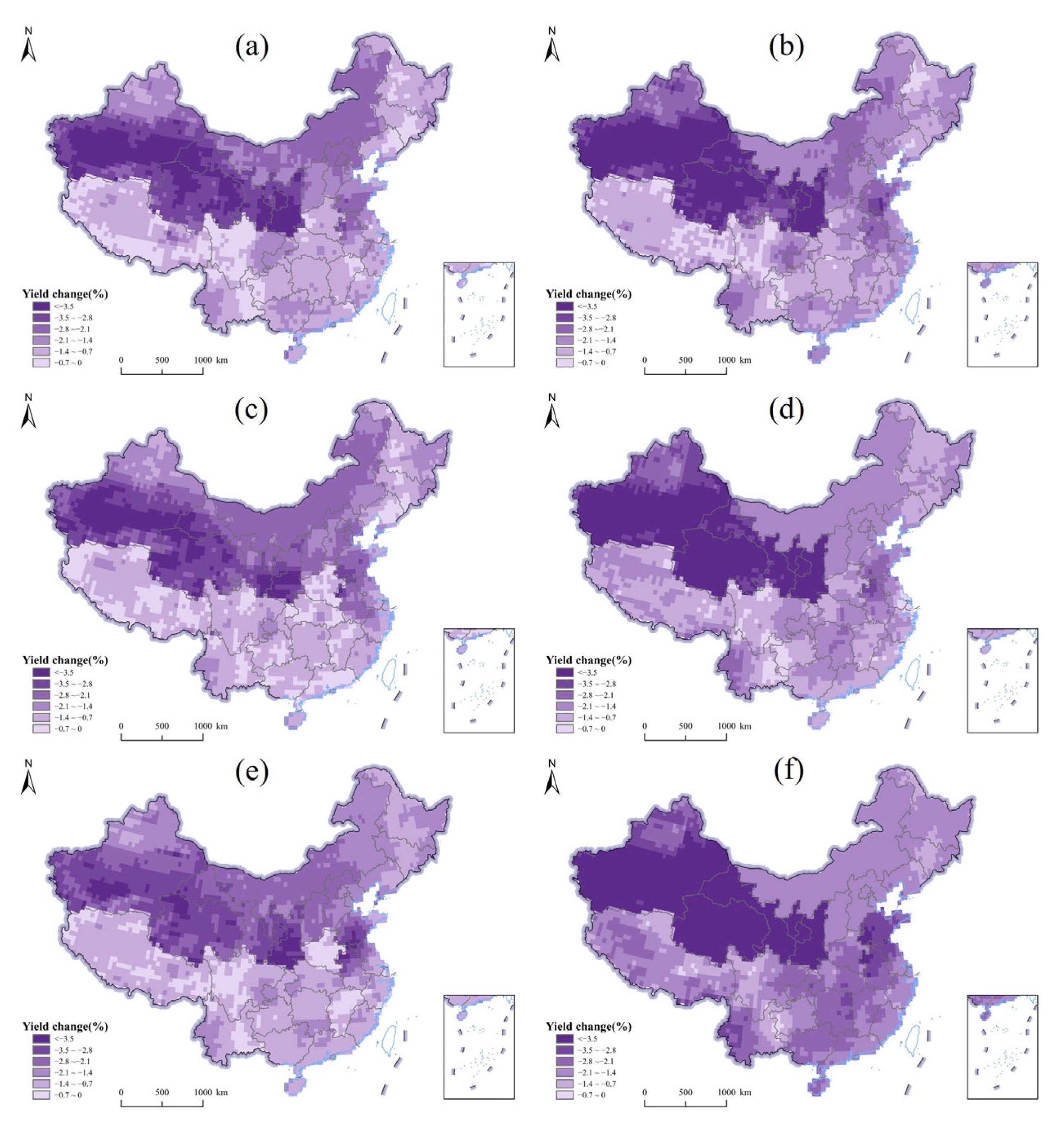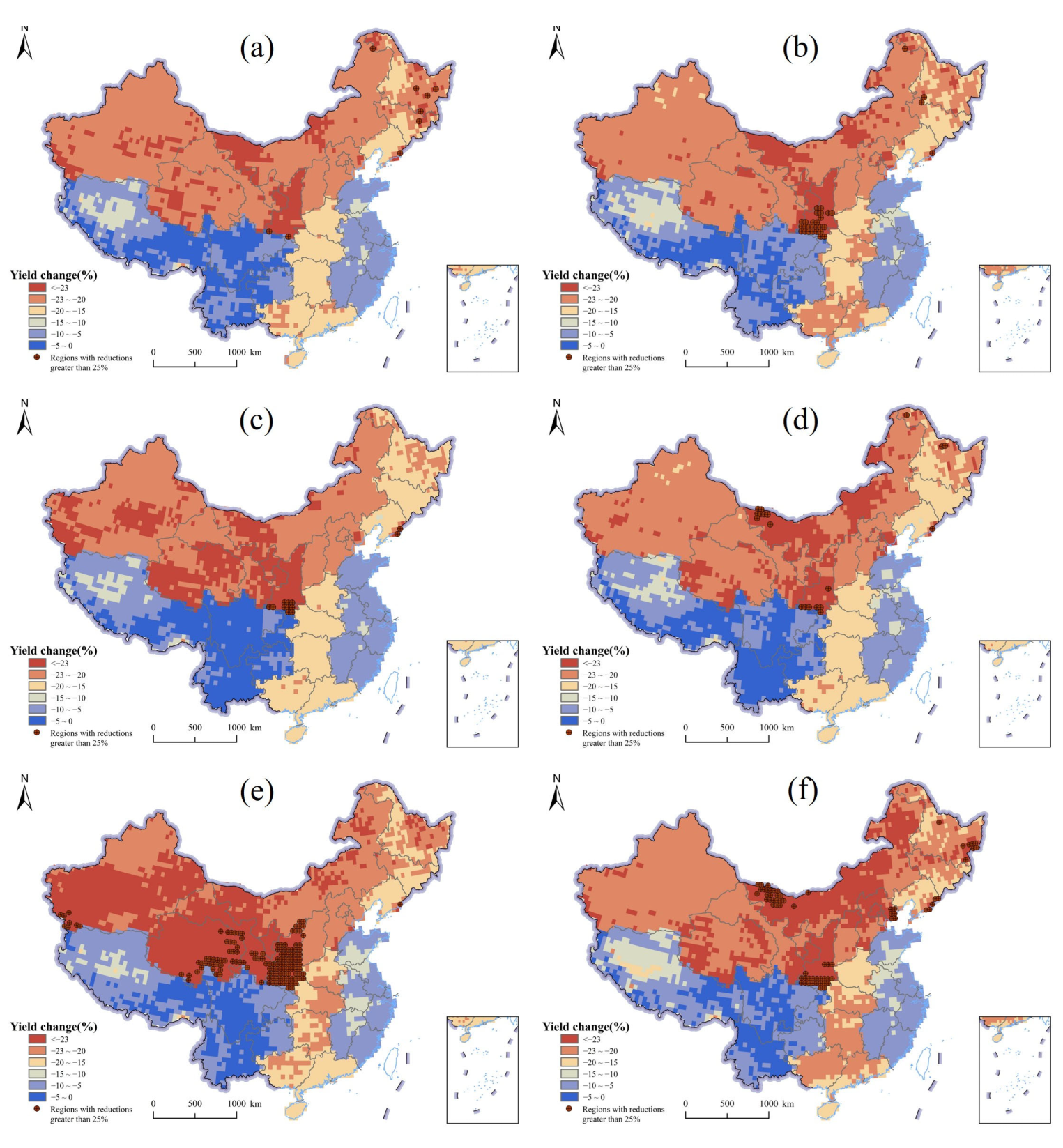 3.3. Estimation of the Combined Impact of Extreme Climate Events on the Crop Yield Change