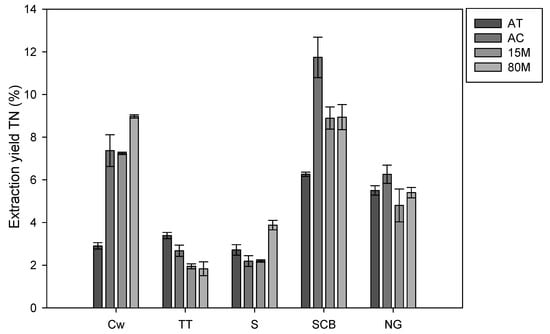 Table 1), extraction efficiencies differed, suggesting that the bulking agent modulates the release of soluble N forms.