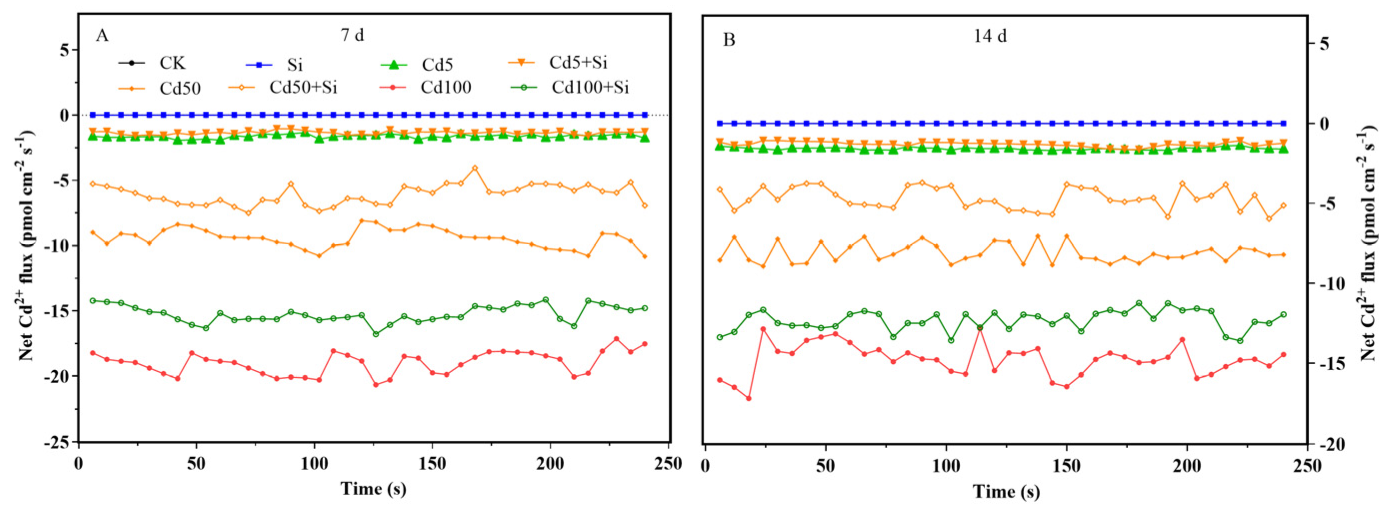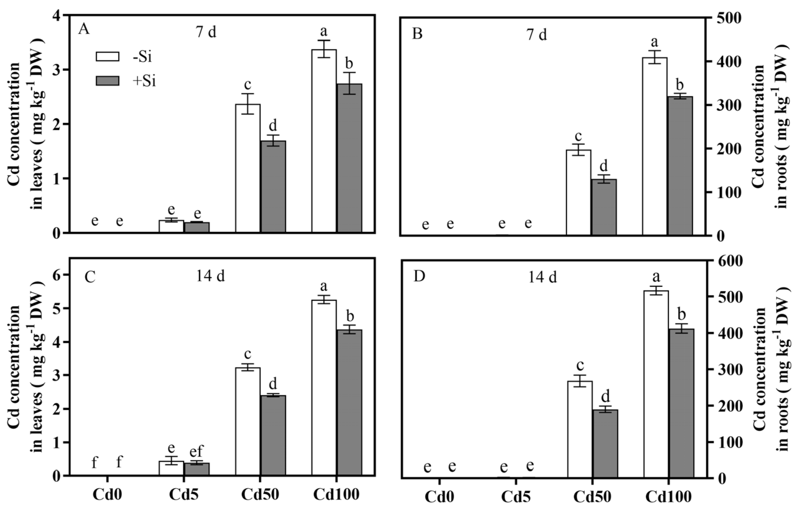 2.2. Determination of Cd and Si Contents in Roots and Leaves