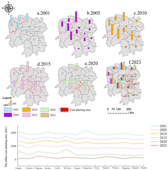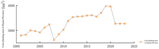 Changes in maize acreage in Hunan Province, 2001–2023.