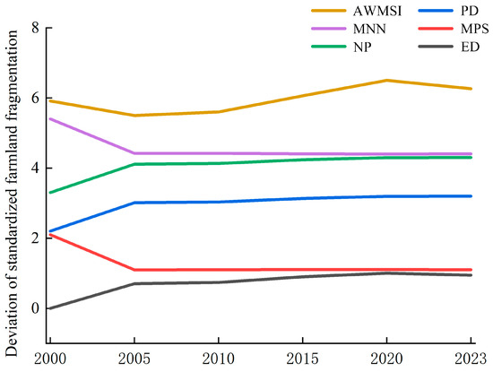 Changes in the maize landscape index in Hunan Province, 2001–2023.