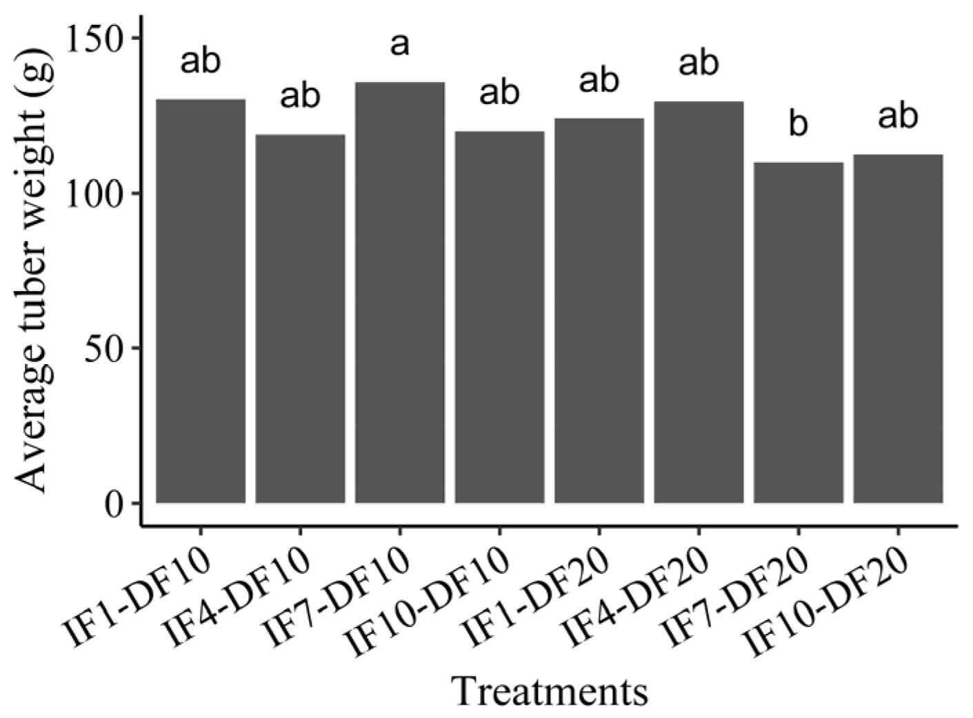 3.5. Marketable Yield, Average Tuber Weight, and Water Productivity