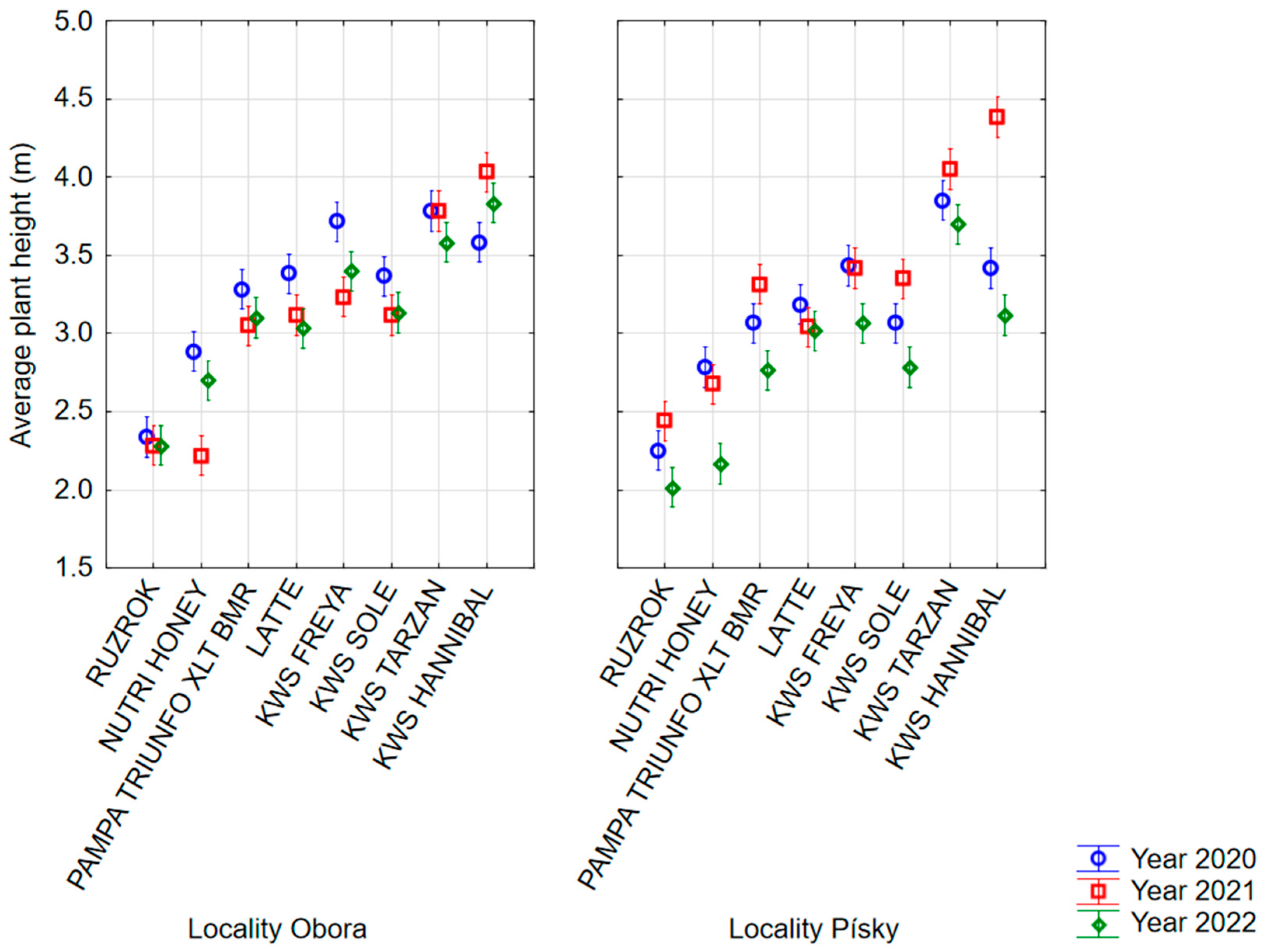 Porčová, L.; Frantová, N.; Rábek, M.; Jovanović, I.; Smutný, V.; Řiháček, M.; Mrkvicová, E. Yield Potential of Silage Sorghum: Cultivar Differences in Biomass Production, Plant Height, and Tillering Under Contrasting Soil Conditions in Central Europe. Agronomy 2025, 15, 2352. https://doi.org/10.3390/agronomy15102352